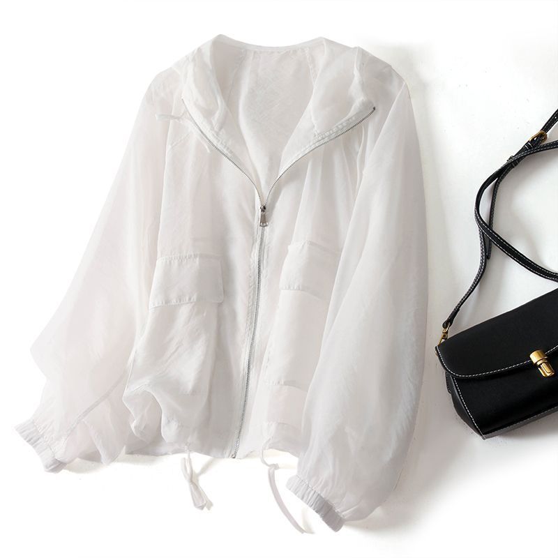 Lightweight Breathable Sun Protection Clothing Women's Spring Loose Top Trendy Hooded Drawstring Thin Coat